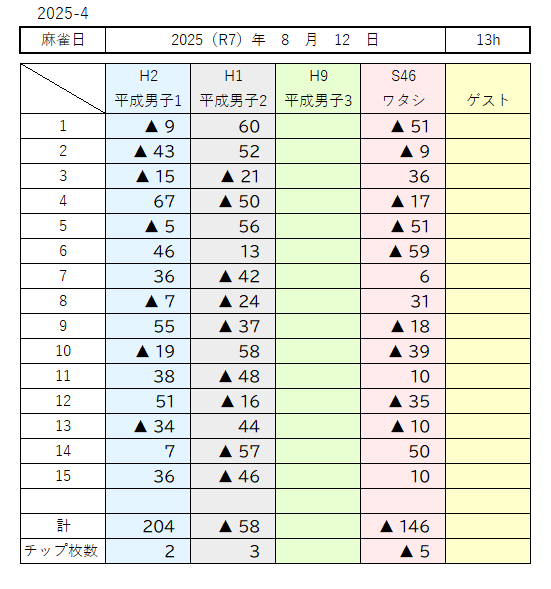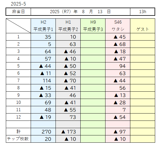 ブログでも何度か(1号とはもう麻雀しない)といってますが、今回も思いました(笑)